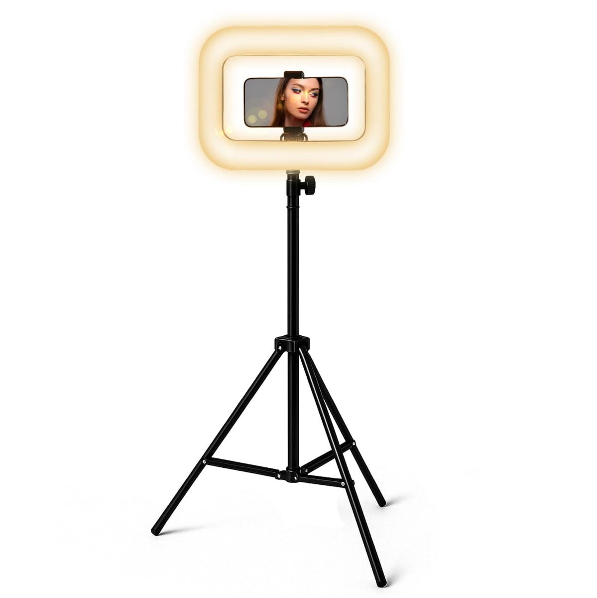 El aro de luz LED rectangular recargable es ideal para creadores de contenido, fotógrafos y profesionales del maquillaje. Con 240 LEDs de alta luminosidad y tres tonos de luz ajustables, ofrece iluminación potente y uniforme para cualquier entorno. Su diseño portátil con batería recargable y trípode ajustable de hasta 2.1 m permite obtener resultados profesionales desde cualquier lugar.