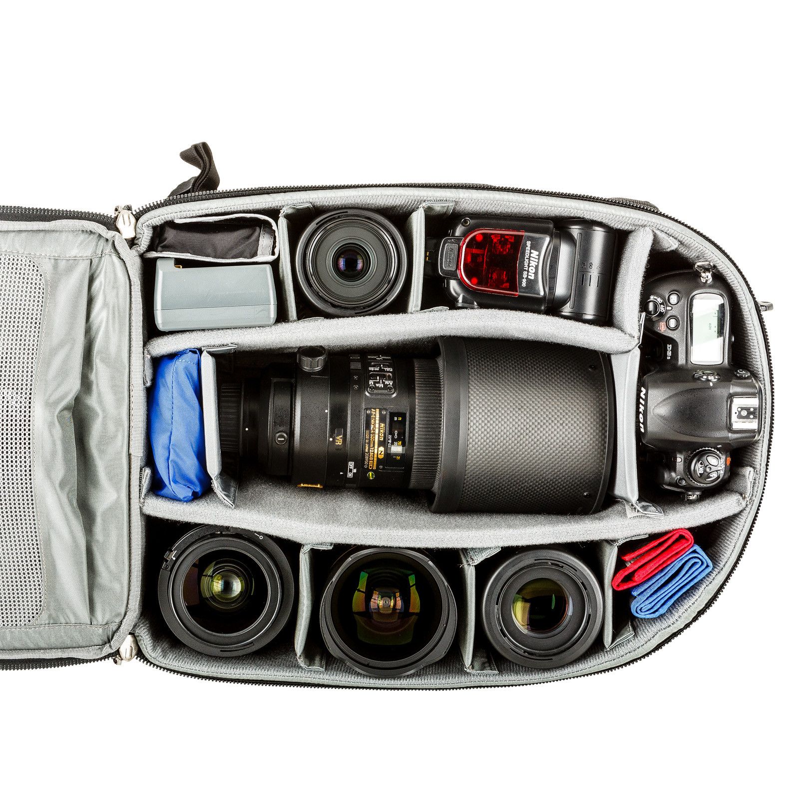 Equipaje de mochila que se adapta compartimentos más generales, puede contener hasta un 400 mm f / 2.8