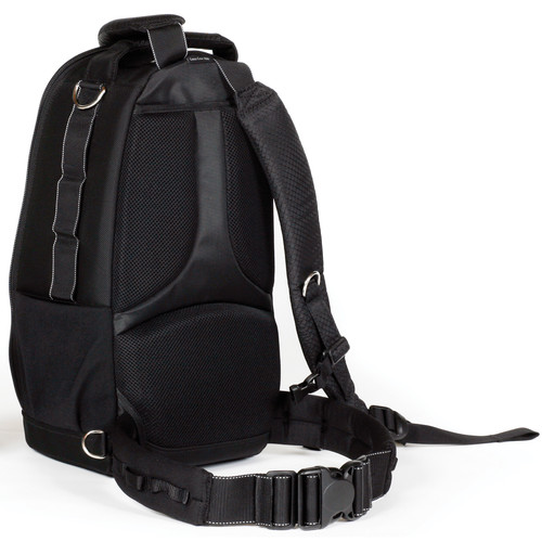 Este tipo de paquete convertible ofrece funciones duales y le ahorra la molestia de tener que comprar dos bolsas separadas. Las correas para los hombros de la mochila le permiten usar la correa de componentes modulares para el uso tradicional del hombro. Esta correa de hombro Curved Comfort tiene un buen nombre. Las correas de los hombros se pueden ocultar simplemente desconectando los anillos en D. Dentro del paquete, hay un anillo de espuma en la parte inferior que no solo se utiliza para amortiguar su plataforma, sino que también mantendrá la lente en su lugar. También hay un collar de espuma que asegura la parte posterior de la lente proporcionando aún más estabilidad interna. El paquete también es capaz de sostener un monopié en cualquiera de sus bolsillos laterales elásticos. Sin embargo, si prefiere llevar un trípode tradicional, se proporcionan correas laterales.