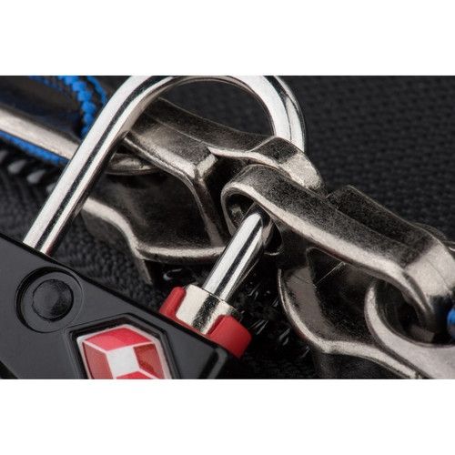 También en el frente exterior del paquete son dos bolsillos delanteros con cremallera. El superior tiene un panel organizador para elementos más pequeños, como bolígrafos, baterías, tarjetas de memoria y un teléfono celular. Los bolsillos con doble cremallera en cada lado del paquete tienen bolsillos elásticos a juego para guardar una botella de agua, guantes u otro equipo. Encima del paquete hay un portatarjetas de identificación y un asa acolchada. Para mayor seguridad, las cremalleras YKK pueden aceptar un candado opcional proporcionado por el usuario.