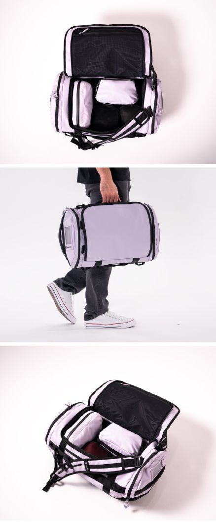 La Carryall Duffel de 30L se adapta a cualquier situación gracias a su diseño versátil. Puedes usarlo como mochila para mayor comodidad en trayectos largos, o como un duffel de mano cuando necesitas acceder rápido a tus pertenencias. Esta flexibilidad lo hace ideal tanto para viajes cortos como para la vida diaria, sin comprometer el estilo ni la funcionalidad.