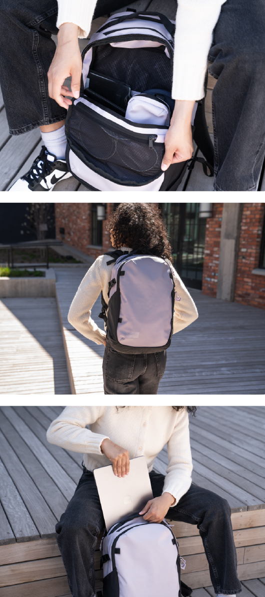 La Nimbus 18L está fabricada con materiales de alta calidad que cuentan con recubrimiento resistente al agua. Esto asegura que tanto tu laptop como tus pertenencias personales se mantengan protegidas contra lluvias ligeras, humedad y polvo. Su diseño sellado y robusto te brinda la tranquilidad de llevarla en tus trayectos diarios o en escapadas al aire libre sin preocuparte por las condiciones climáticas.