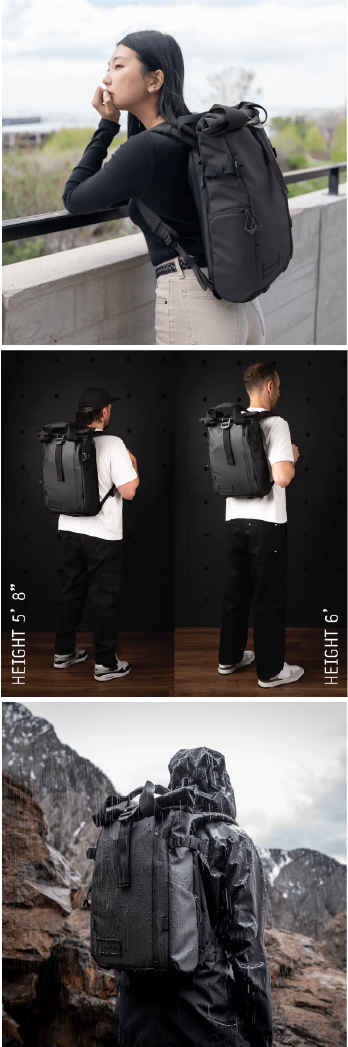 El diseño rolltop permite ampliar o reducir la capacidad de la mochila según tus necesidades. Al ajustarlo, tus pertenencias permanecen seguras y protegidas contra la intemperie, al mismo tiempo que mantienes un perfil compacto cuando no necesitas toda la capacidad.