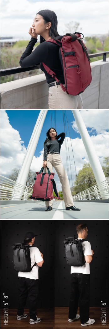 El diseño rolltop permite ampliar o reducir la capacidad de la mochila según tus necesidades. Al ajustarlo, tus pertenencias permanecen seguras y protegidas contra la intemperie, al mismo tiempo que mantienes un perfil compacto cuando no necesitas toda la capacidad.