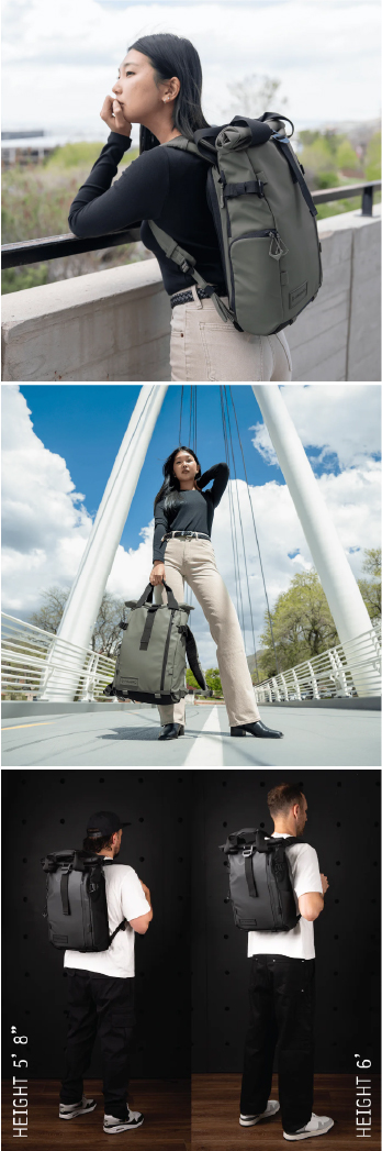 El diseño rolltop permite ampliar o reducir la capacidad de la mochila según tus necesidades. Al ajustarlo, tus pertenencias permanecen seguras y protegidas contra la intemperie, al mismo tiempo que mantienes un perfil compacto cuando no necesitas toda la capacidad.