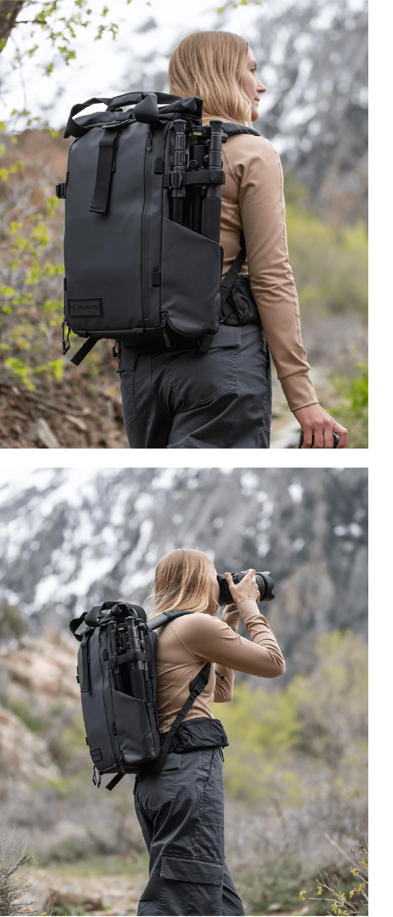 La PRVKE V4 está diseñada pensando en la agilidad del fotógrafo. Gracias a su acceso lateral, puedes sacar tu cámara sin necesidad de quitarte la mochila por completo. Esto significa que nunca perderás una toma importante: basta con girar la mochila hacia el frente, abrir el compartimento y capturar el momento en segundos.