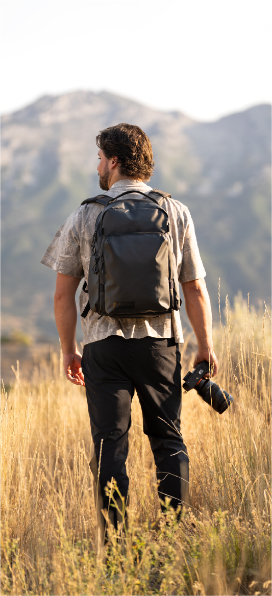 La PRVKE Pocket 21L combina un diseño minimalista con una estructura pensada para el uso diario y profesional. Su estilo moderno permite llevarla en entornos urbanos, viajes o sesiones fotográficas, mientras mantiene una apariencia elegante que no parece una mochila de equipo fotográfico.