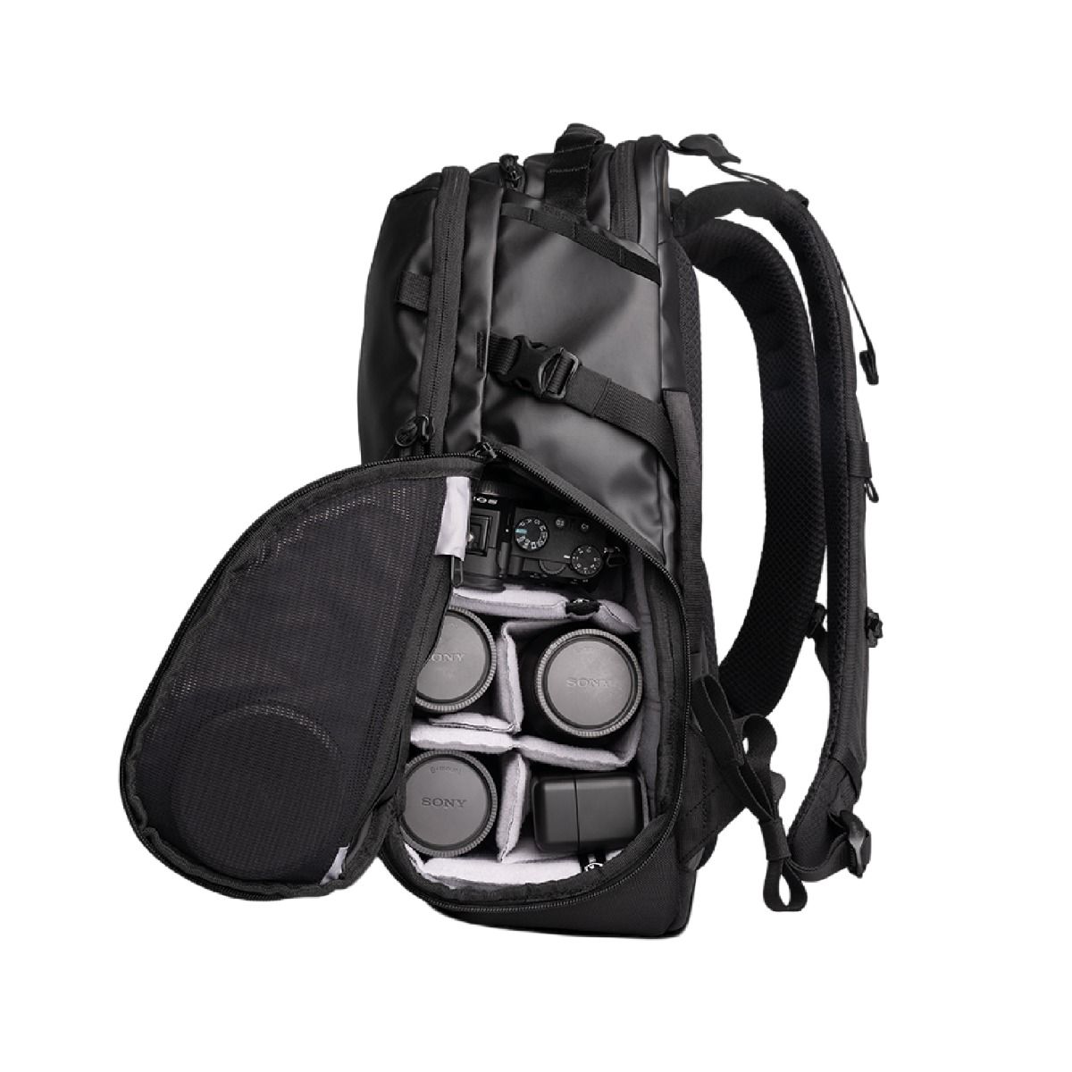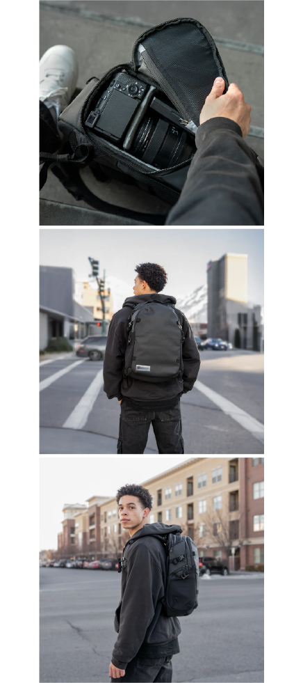 Una apertura lateral ubicada estratégicamente permite sacar la cámara o un lente en segundos, sin necesidad de quitarte la mochila. Esta función está pensada para que no pierdas ningún momento espontáneo y tengas siempre tu equipo listo para la acción.