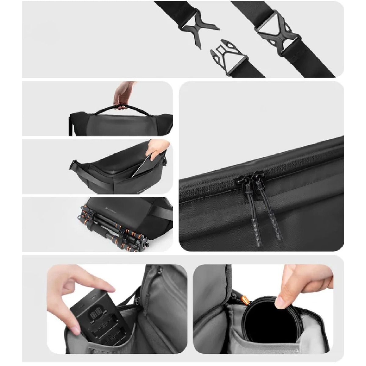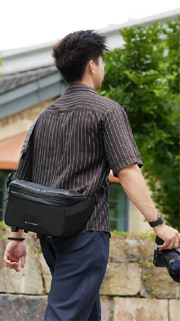 Su apertura lateral permite acceder al equipo en cuestión de segundos, sin necesidad de quitar el bolso del cuerpo. Basta con deslizarlo hacia el frente para tomar la cámara de inmediato. Este diseño es ideal para fotografía callejera, viajes, eventos o cualquier situación donde cada segundo cuente.