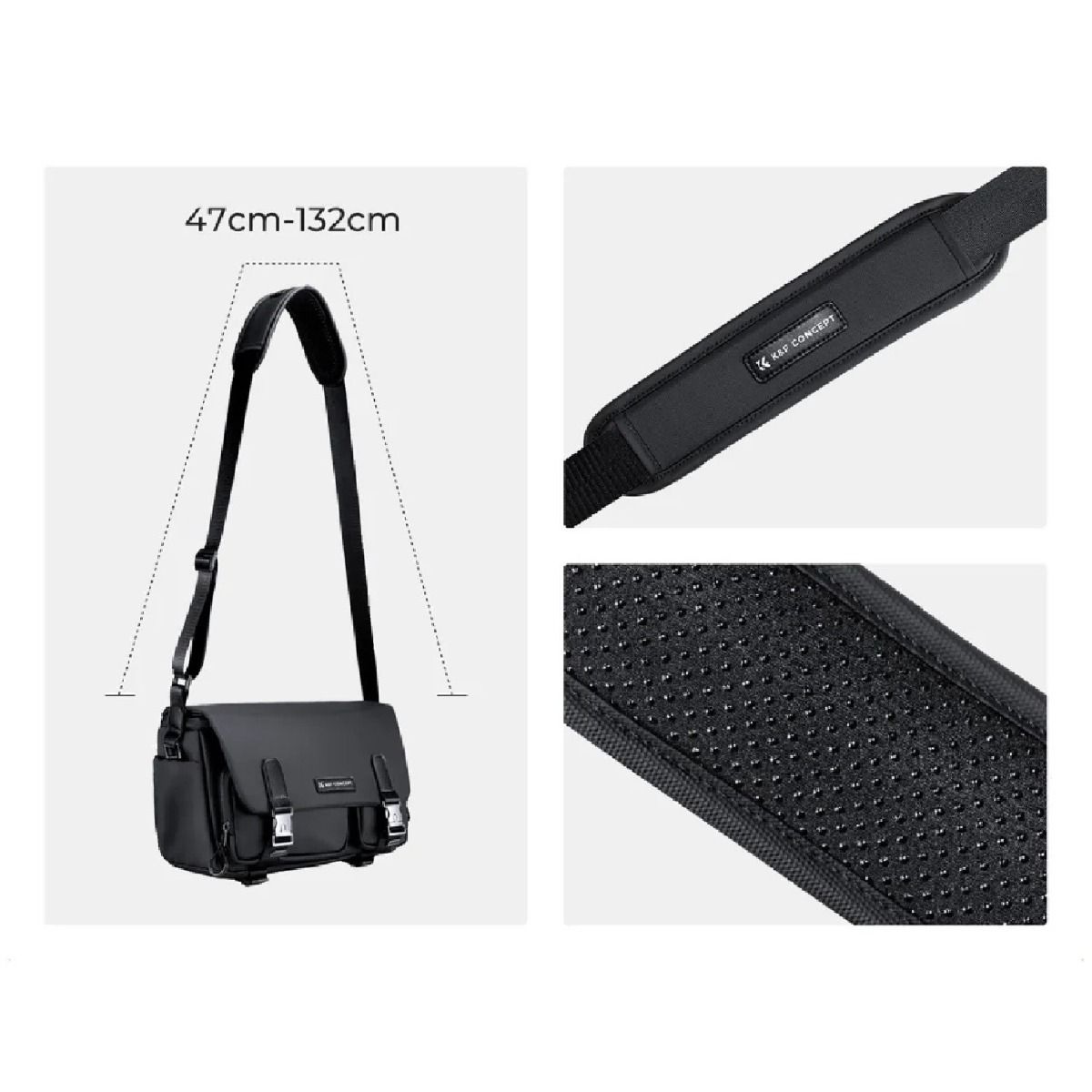 La correa ajustable incluye un pad acolchado y antideslizante que distribuye el peso de manera uniforme, haciéndolo cómodo para usar durante largas caminatas, viajes o sesiones fotográficas extensas. Su capacidad de ajuste permite adaptarlo a distintos estilos de carga, ya sea cruzado, al hombro o al pecho. El diseño ligero del bolso reduce la fatiga y facilita el movimiento incluso cuando está completamente lleno.