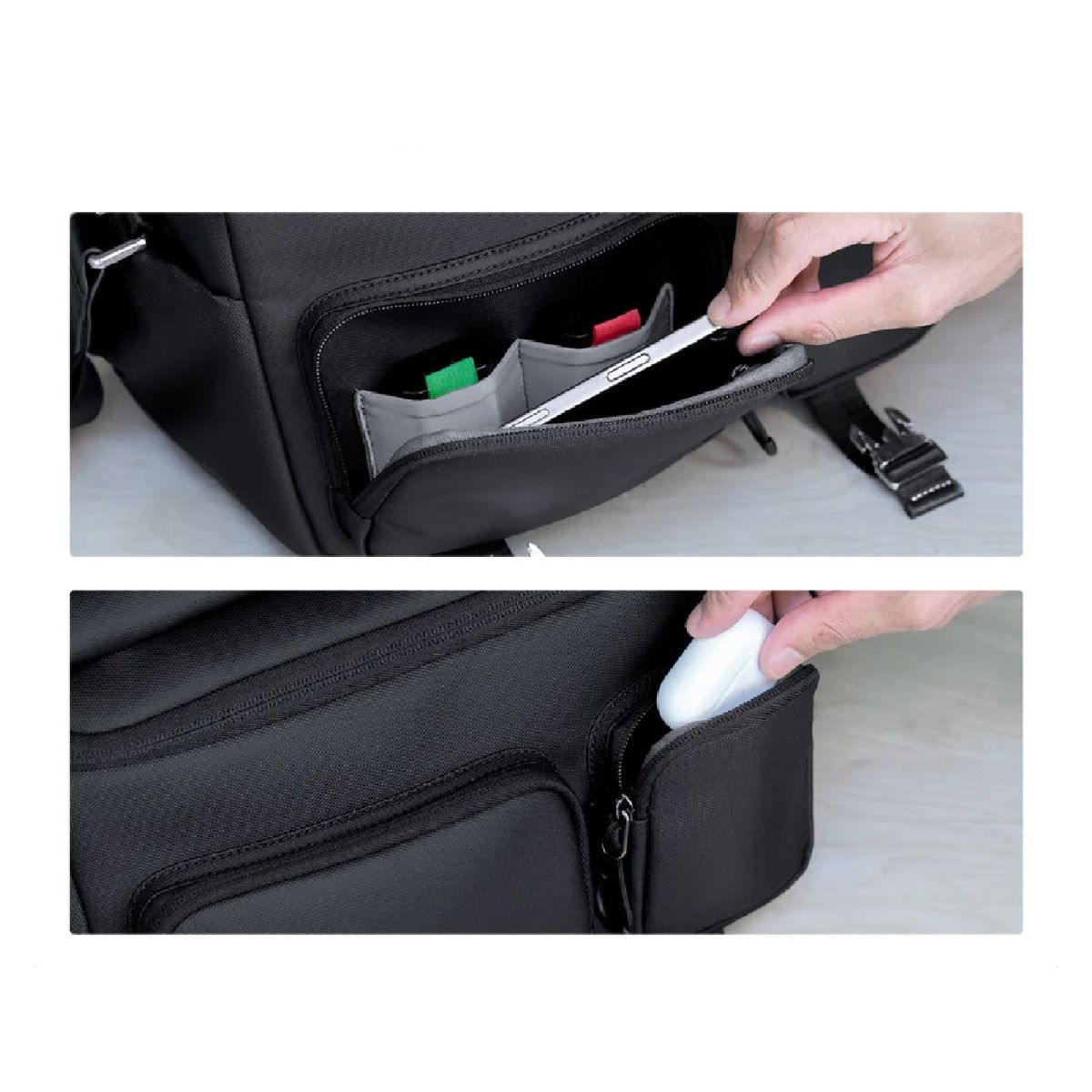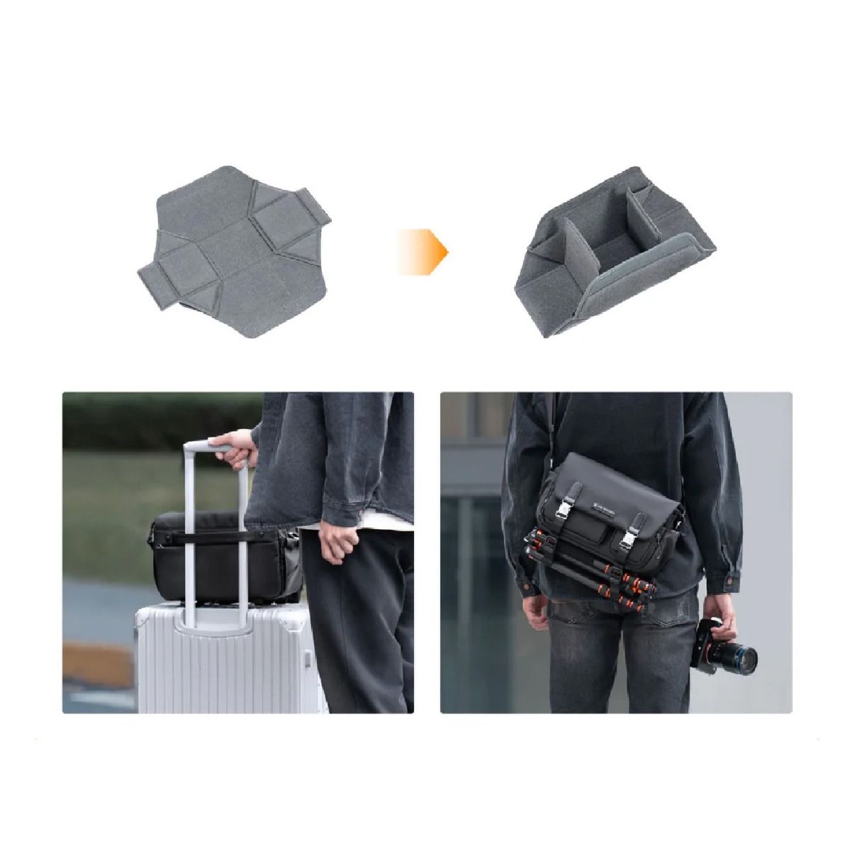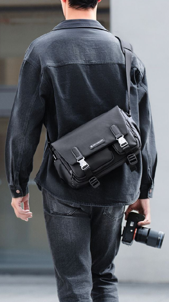 Este bolso se adapta fácilmente tanto a escenarios de fotografía callejera como a viajes, trabajo diario o situaciones donde necesitas tener tu cámara siempre a la mano. Su estética urbana y minimalista lo hace combinar con cualquier estilo, mientras que su interior organizado ofrece una solución práctica para quienes buscan un bolso confiable, funcional y elegante.