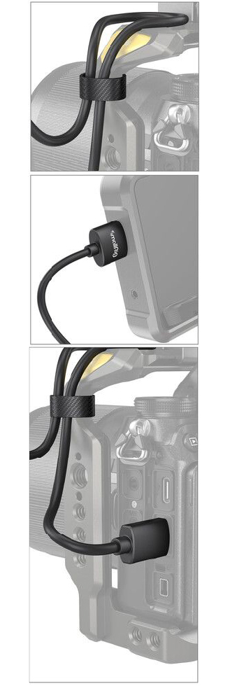 El grosor externo de este cable es de apenas 3.6 mm, mucho más delgado que un cable HDMI convencional. Esto aporta dos ventajas clave: primero, mayor flexibilidad del cable, lo que facilita su acomodación en rigs, gimbals o setups ajustados; segundo, menor volumen y peso en el montaje, lo que evita que el cable sobresalga, estorbe o interfiera con otros conectores adyacentes.