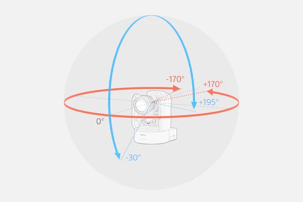 La FR7 cuenta con funcionalidad de giro, inclinación y zoom que se puede controlar a distancia o invocar a posiciones predefinidas. El ángulo de giro es de -170° a +170° y el de inclinación, de -30° a +195° en orientación normal.