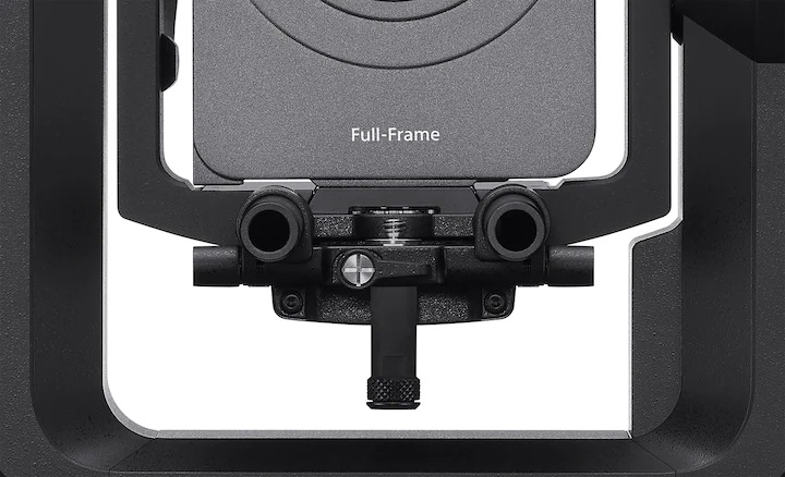 Dos varillas de objetivo bajo el cabezal de la cámara permiten conectar accesorios montables en barras estándar de 15 mm.
