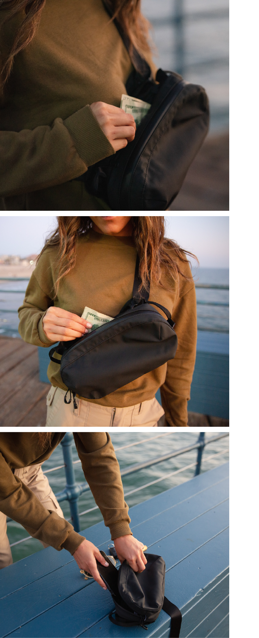 El D1 Fanny Pack cuenta con un bolsillo seguro para guardar dinero, pasaporte o documentos importantes, brindando tranquilidad durante tus viajes. Este compartimento mantiene tus pertenencias esenciales protegidas y al alcance, evitando pérdidas o accesos no deseados.