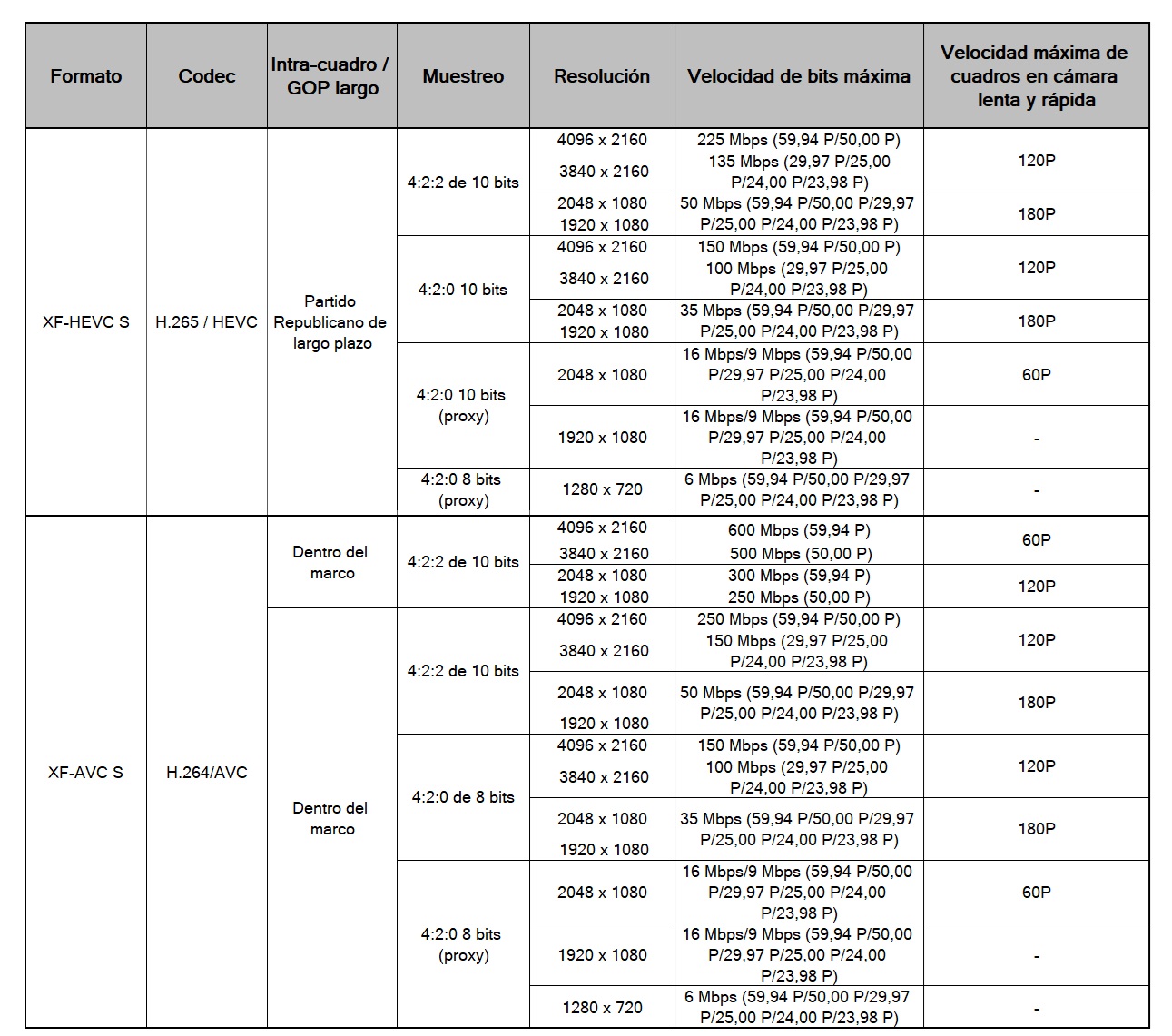 Grabación interna: 6K 30P Cinema RAW Light, XF-AVC, XF-HEVC S y XF-AVC S