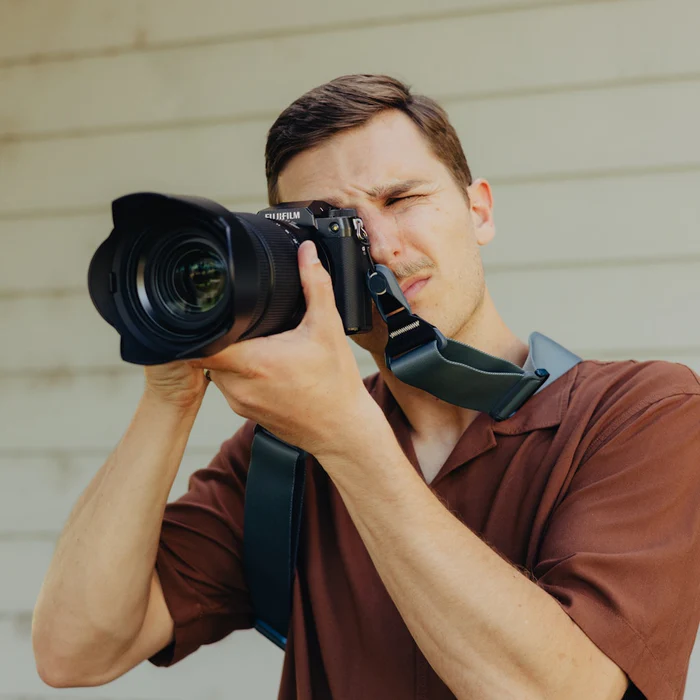 Su diseño inteligente permite usarla como correa de hombro, bandolera cruzada (“sling”), o al cuello. Gracias a su tejido interno acolchado, materiales de alta calidad y sistema de anclaje rápido, es cómoda incluso durante largas jornadas de fotografía.