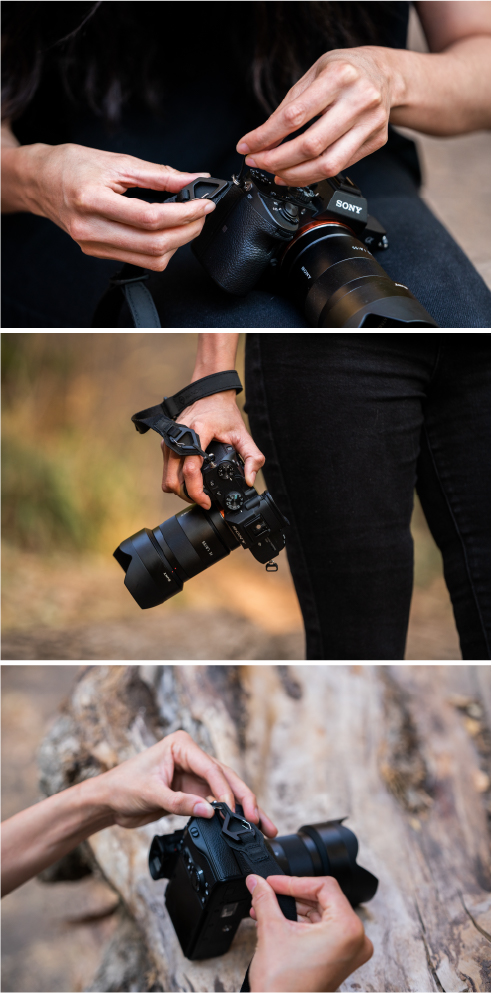 El mecanismo de ajuste del Wrist Strap es intuitivo y eficiente: basta con un solo movimiento para apretar o aflojar la correa según lo necesites. En caso de que la cámara se te escape accidentalmente, la correa se tensará automáticamente alrededor de tu muñeca, asegurando una respuesta inmediata. Esta funcionalidad está pensada para no interrumpir tu flujo creativo y permitirte moverte con total confianza.