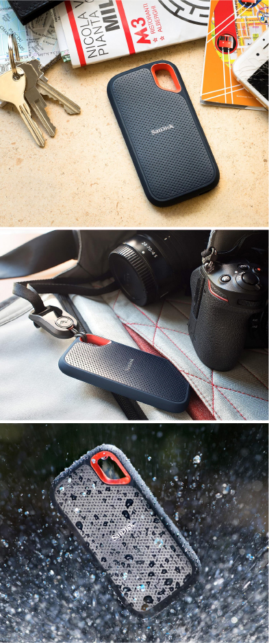 El SanDisk Extreme Portable SSD ofrece transferencias ultrarrápidas de hasta 1050 MB/s en lectura y 1000 MB/s en escritura, lo que permite mover y editar archivos grandes, como fotografías RAW o videos en 4K, en cuestión de segundos.