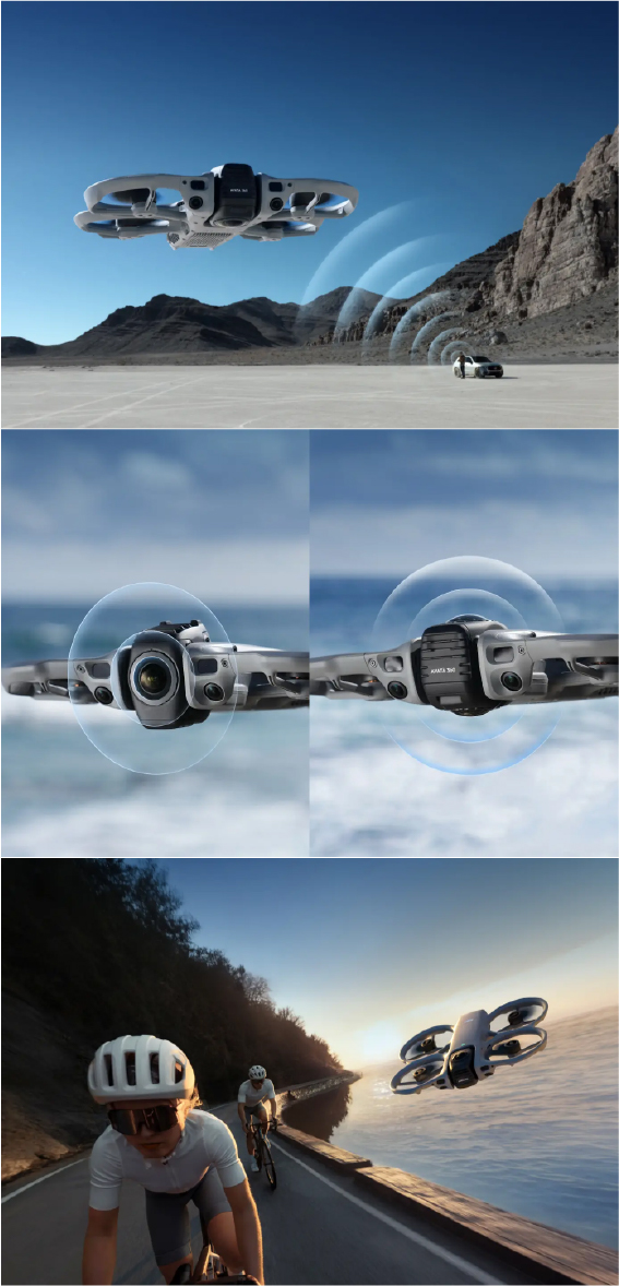 El DJI Avata 360 está equipado con sistemas de detección de obstáculos en múltiples direcciones, lo que permite volar con mayor confianza incluso en espacios complejos o reducidos. Además, incorpora protectores de hélices integrados que reducen el riesgo de daños tanto en el equipo como en el entorno, haciendo que el vuelo sea más seguro y confiable.