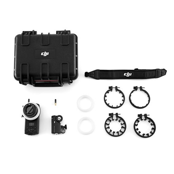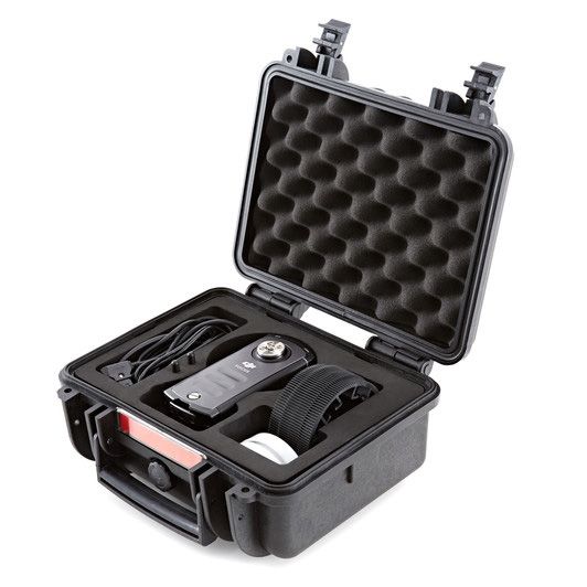 Retire el enfoque a una distancia de hasta 300 'con el sistema de control de lentes inalámbrico DJI Focus . Este sistema está compuesto por una unidad manual de control remoto, un solo motor, cables de conexión, así como otros extras, y cabe dentro de un estuche rígido incluido. Si bien el Focus puede funcionar como un enfoque de seguimiento remoto estándar, tiene algunos trucos bajo la manga; con un cable separado, puede controlar el enfoque o el iris de la lente montada en el cardán Zenmuse X5 o X5R de su avión no tripulado Inspire.