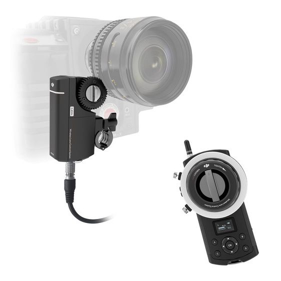 Con un cable disponible por separado, la unidad manual DJI Focus se puede conectar a un transmisor Inspire. Con esta conexión, el enfoque de la lente y el iris se pueden controlar directamente en tiempo real con el enfoque.