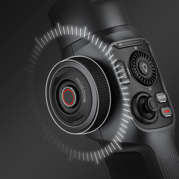 Desde el Smooth 5 puedes controlar los parámetros de la cámara de tu móvil. Incluye además prácticos atajos para la app ZY Cami o la galería, un dial para navegar por los menús y un joystick para mover el gimbal.