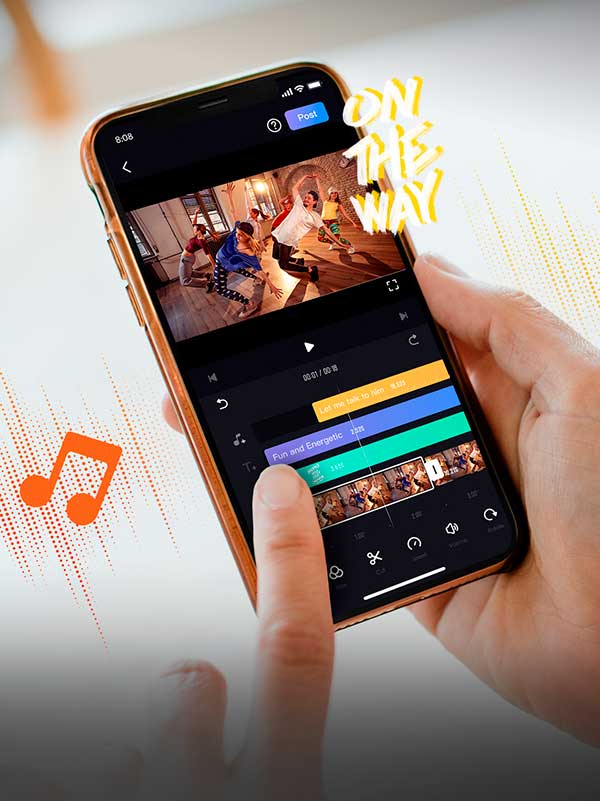 El editor de la app gratuita ZY Cami de Zhiyun incluye un sinfín de opciones para dar vida a tus vídeos. Añádeles música y pegatinas. Corta, recorta y crea tus historias a tu manera.