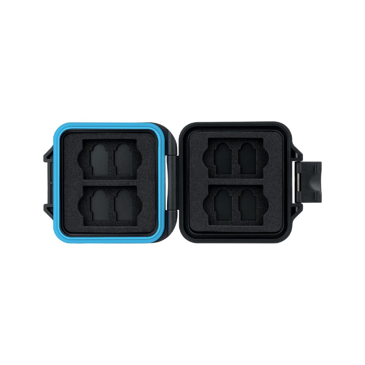 Cuenta con ranuras internas diseñadas con precisión para sujetar firmemente tarjetas SD y Micro SD. Esto evita movimientos internos, rayones o contacto entre ellas, manteniéndolas organizadas y listas para usar.