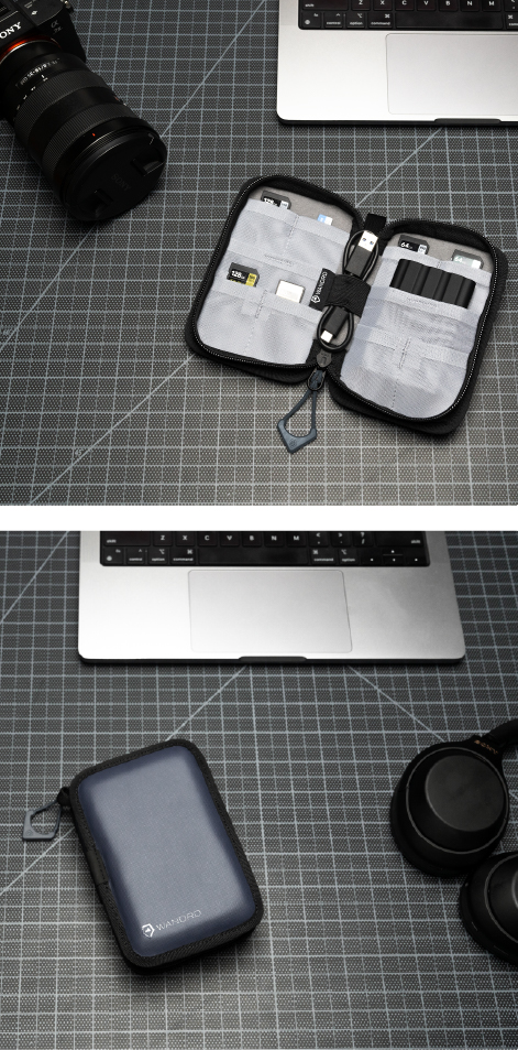 El estuche incorpora un cordón elástico adicional para accesorios pequeños como adaptadores o cables, y un loop de sujeción que permite engancharlo fácilmente a tu mochila o equipo. Estos pequeños detalles hacen que el estuche no solo proteja tu memoria, sino que también simplifique tu flujo de trabajo, manteniendo todo tu equipo digital accesible, seguro y listo para usar en cualquier situación.