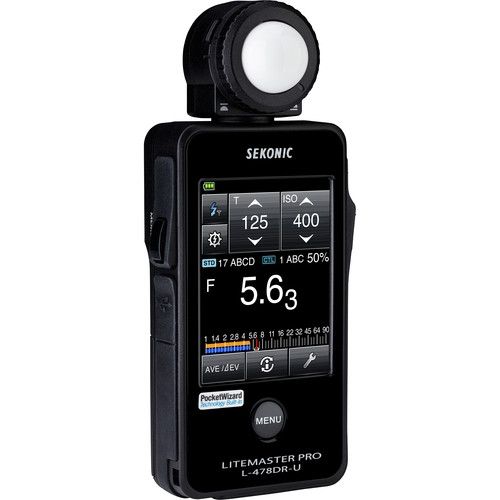El Exposímetro Digital Sekonic LiteMaster Pro L-478DR está equipado con una pantalla táctil LCD a color de 2.7 "grande e intuitiva y ahora con control de potencia de flash de radio incorporado y activación para PocketWizard ControlTL y sistemas inalámbricos estándar, el Exposímetro Digital Sekonic LiteMaster Pro L-478DR realizará mediciones de incidentes para el ambiente y luz de flash súper simple. La capacidad de este sistema permite un control completo de la potencia del flash en incrementos de 0.1 pasos. Junto con esto, el sistema de radio tiene una selección separada entre 3 zonas para ControlTL o 4 zonas para activación estándar con valores medidos mantenidos para determinación de la relación