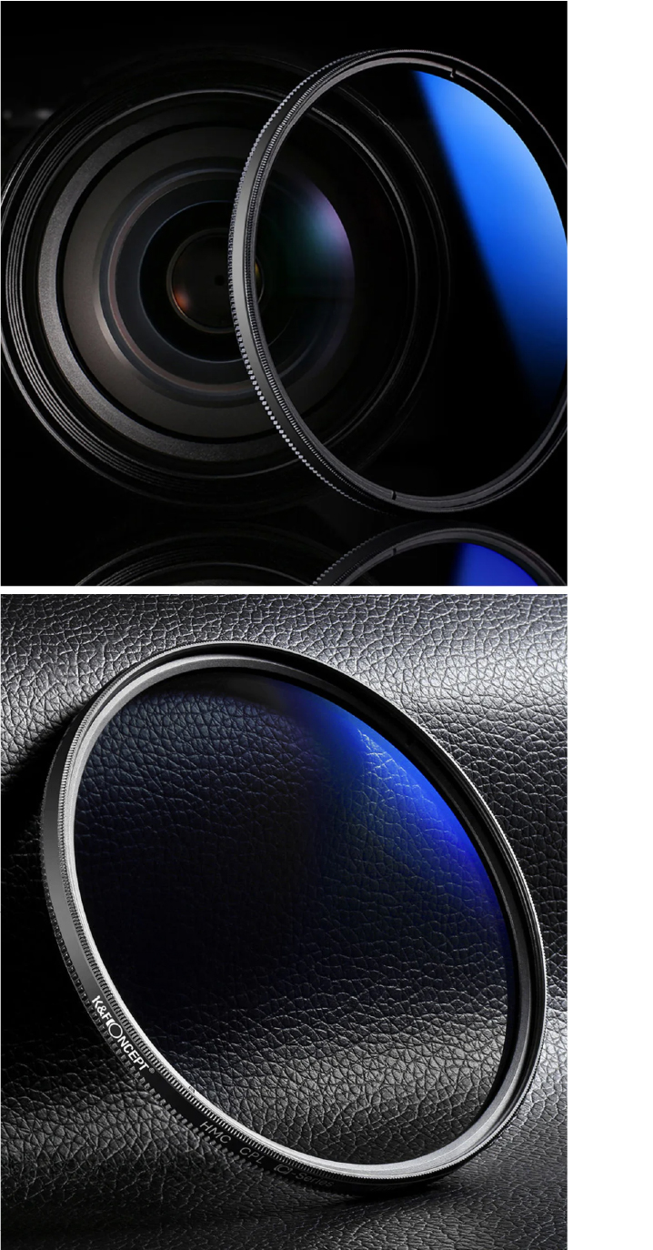 El filtro está fabricado con vidrio óptico de alta precisión que mantiene la nitidez y la fidelidad del color de la imagen. Su recubrimiento multicapa ayuda a reducir reflejos internos, destellos y efectos fantasma que pueden aparecer al trabajar con fuentes de luz intensas. Además, este tratamiento mejora la transmisión de luz y protege el vidrio contra polvo, huellas y pequeñas salpicaduras, lo que contribuye a mantener la calidad de imagen en diferentes condiciones de uso.