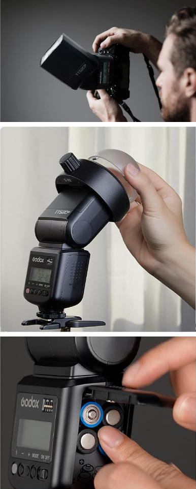Con número guía 33 (ISO 100) y tiempo de reciclado de solo 1.8 segundos, garantiza hasta 400 disparos a máxima potencia usando baterías NiMH, ideal para sesiones prolongadas sin interrupciones.