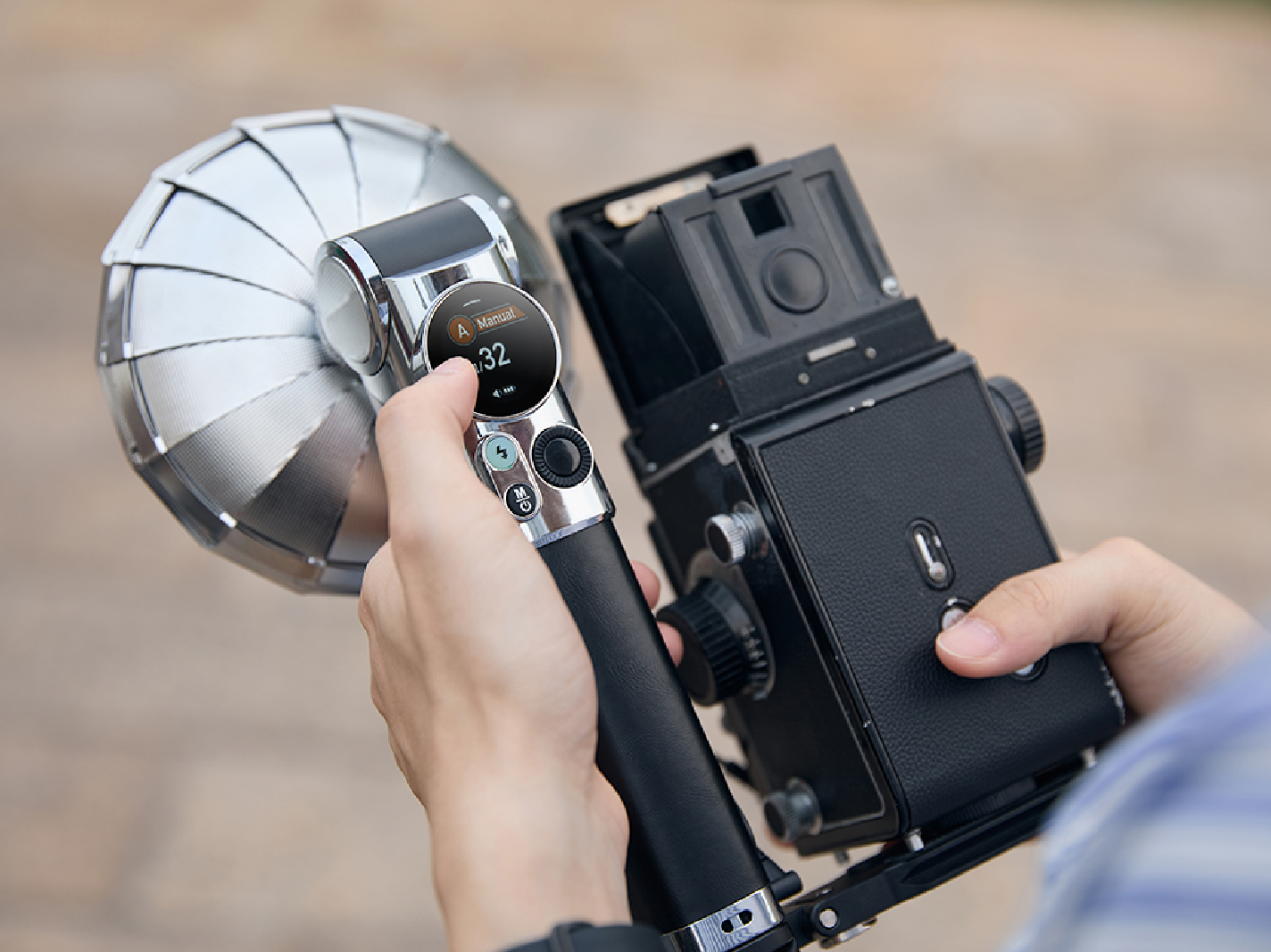 Destaca por su reflector tipo abanico, inspirado en las cámaras clásicas. Este diseño no solo añade un toque nostálgico, sino que también proporciona un control preciso de la luz, ideal para lograr efectos suaves y naturales en tus tomas.
