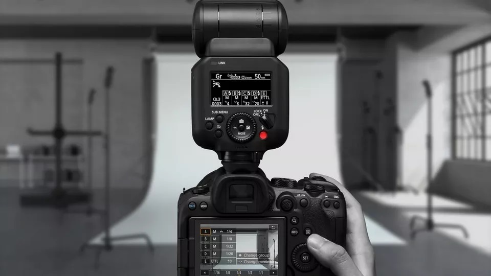 Controla los ajustes mediante el joystick del Speedlite, desde la pantalla LCD de la cámara con el botón de menú directo del Speedlite (Flash) o de forma remota mediante la aplicación Camera Connect.