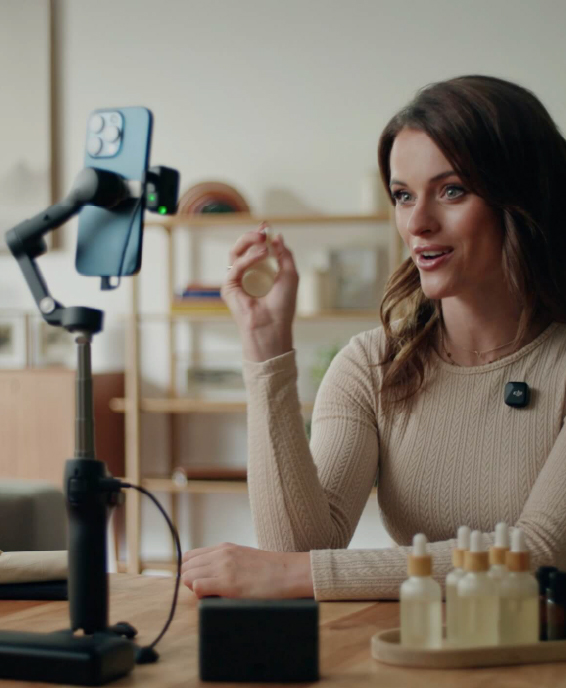 El ecosistema DJI OsmoAudio te permite emparejar con el Mic Mini Transmisor para conseguir un sonido inmersivo y cristalino en tus transmisiones en vivo.