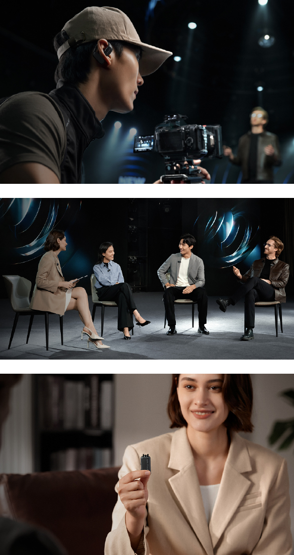 Con micrófonos tipo clip-on ultraligeros y accesorios como protectores contra el viento, fundas de silicona magnéticas y adaptadores para distintos dispositivos, el sistema se adapta con facilidad tanto a cámaras como a teléfonos móviles. Su diseño discreto y portátil lo convierte en una solución práctica y profesional.
