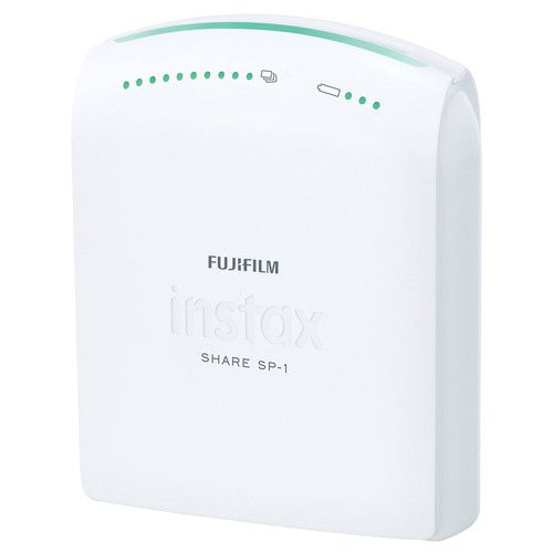 La Fujifilm Instax COMPARTIR Smartphone impresora SP-1 le permite imprimir fotos tomadas con un teléfono inteligente o tableta mediante aplicación instax COMPARTIR gratis para descargar de Fujifilm. tamaño de la imagen es de 2.4 x 1.8 ". Utilice el botón de reimpresión para hacer copias adicionales. Elija entre varias plantillas y filtros, y subir sus imágenes a los sitios de redes sociales.
