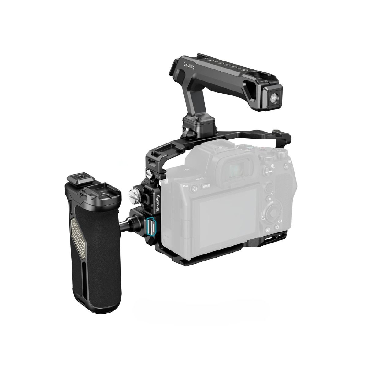 Diseñado específicamente para Sony Alpha 7R V, 7 IV y 7S III, el kit ofrece un ajuste preciso y seguro. Además, su base compatible con sistemas tipo Arca facilita la transición rápida entre grabación en mano, tripié o gimbal, optimizando el tiempo en set.