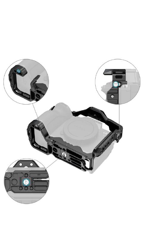 La jaula está fabricada en aleación de aluminio de alta calidad, ofreciendo una estructura sólida y ligera que protege tu cámara contra golpes, caídas y rayaduras. Su diseño ajustado permite acceso completo a botones, puertos, ranuras de tarjeta y batería sin interferencias, manteniendo la operatividad total del equipo.