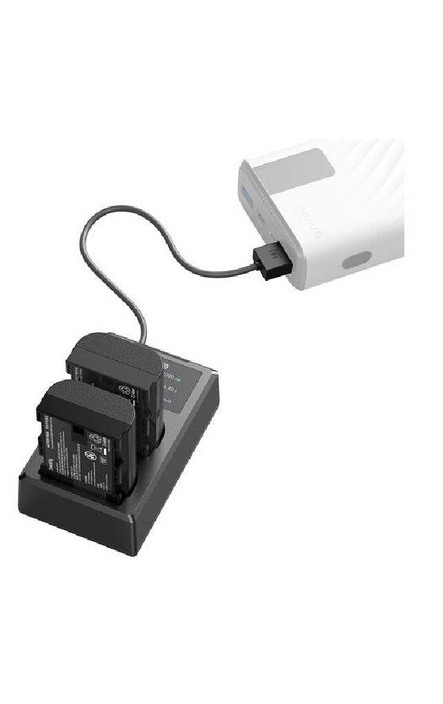 El cargador y las baterías presentan un diseño ligero y compacto, fácil de transportar en mochilas o estuches de equipo. Su construcción sólida está pensada para soportar el uso constante en entornos profesionales, ofreciendo durabilidad y confiabilidad a largo plazo.