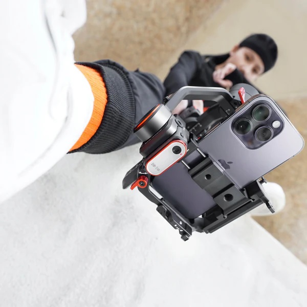 El sistema de liberación rápida Arca-Swiss facilita el cambio entre diferentes accesorios fotográficos, manteniendo la versatilidad y eficiencia durante tus sesiones de fotos o vídeos. Además, el modo vertical nativo permite rotar la cámara 90° para capturar contenido vertical de manera sencilla, ideal para redes sociales.