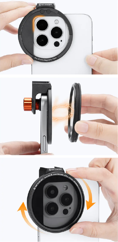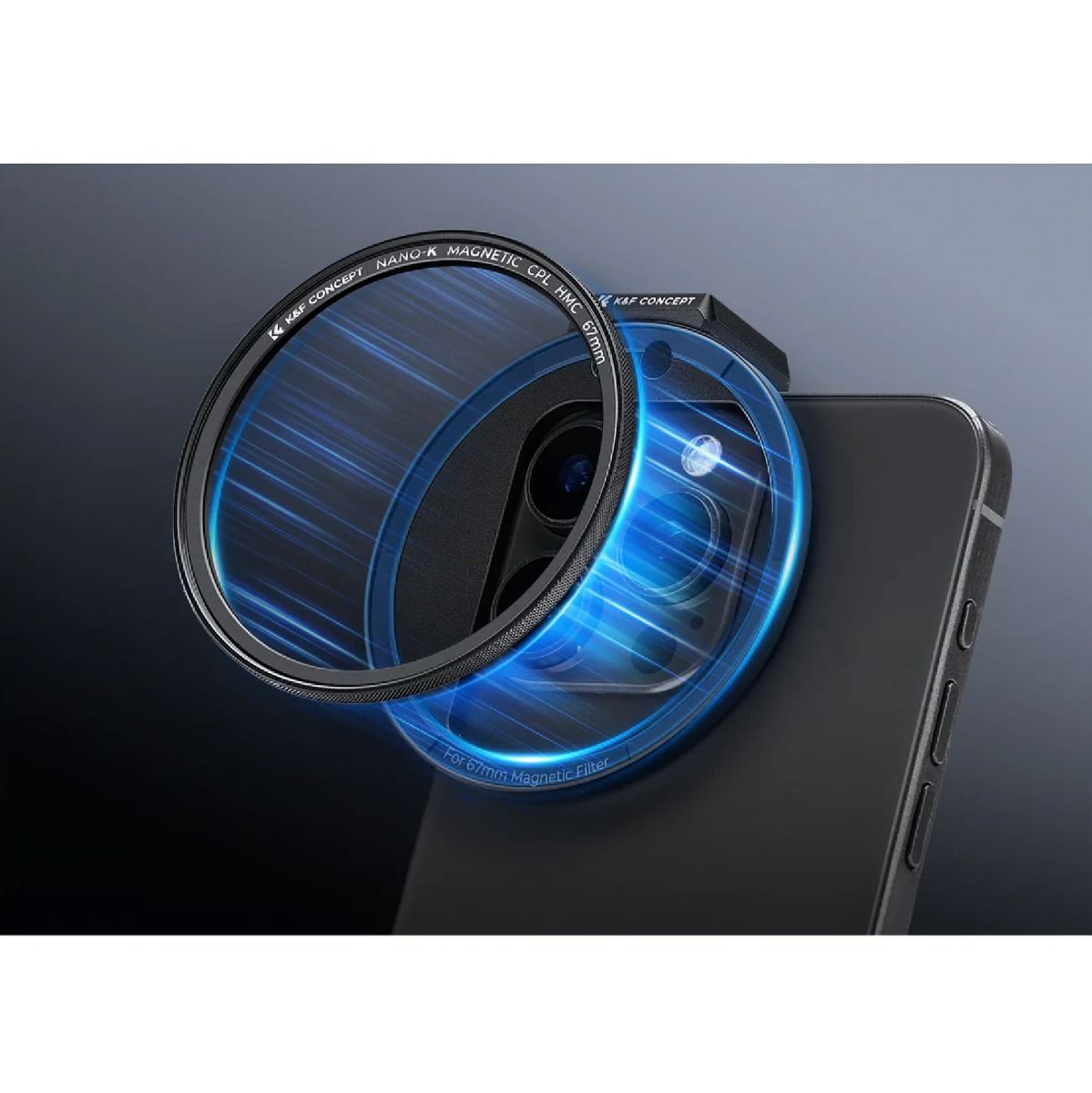 Kit Filtro CPL Magnético K&F Concept 67mm con Clip-on para Celular (Incluye clip universal)
