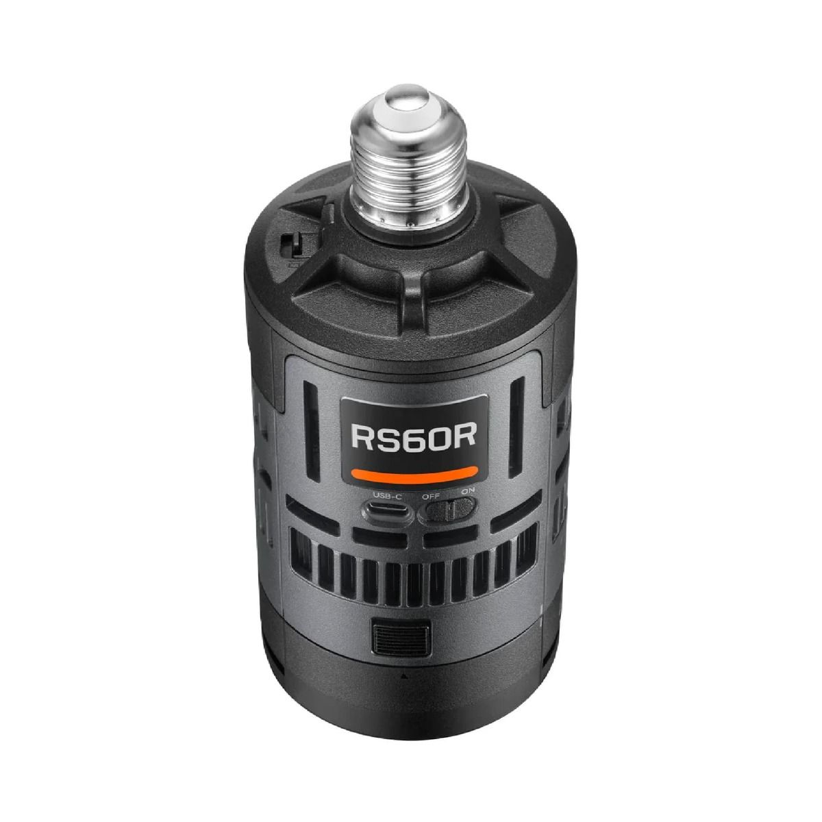 El accesorio de proyección incluido (como lente o reflector de haz) permite dirigir y concentrar la luz de forma más precisa sobre el sujeto o escena, lo que es especialmente útil para entrevistas, retratos, fotografía de producto o efectos creativos. Este accesorio transforma la luz más amplia y suave del RS60R en un haz más definido y orientado, facilitando control sobre sombras y contraste.