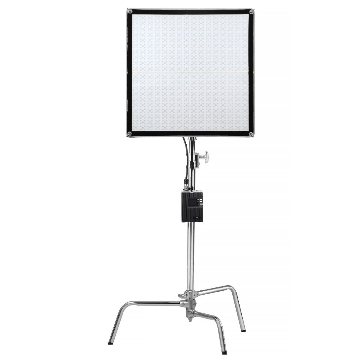 El sistema puede funcionar mediante corriente eléctrica o baterías V-Mount (no incluidas), permitiendo trabajar tanto en estudio como en locaciones sin acceso directo a energía. Esta flexibilidad lo convierte en una herramienta ideal para producciones móviles o sesiones en exteriores.