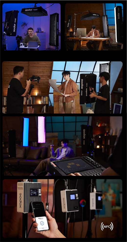 Ofrece temperatura de color ajustable de 1800K a 10,000K y modos avanzados como RGB, HSI, RGBW, GEL y FX, permitiendo crear desde iluminación natural hasta efectos de color cinematográficos. También permite ajustar el matiz verde/magenta para lograr una precisión cromática ideal en cualquier ambiente.