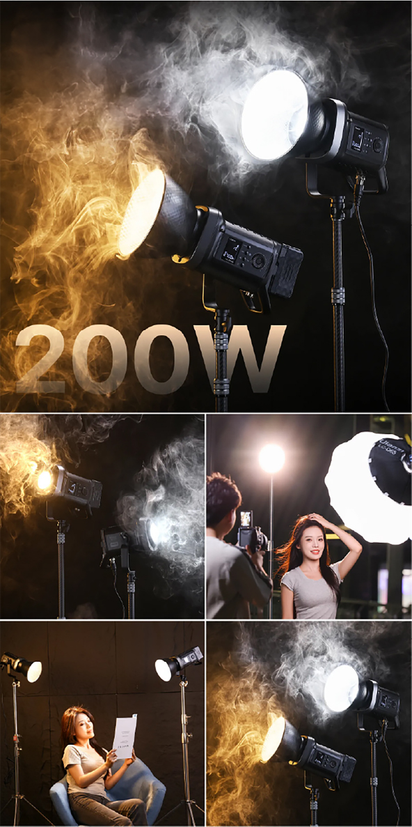 Equipada con una salida de 200W, esta luz ofrece una iluminación intensa y uniforme capaz de cubrir escenas completas con facilidad. Es ideal como luz principal en sets de grabación, entrevistas, cine o streaming, proporcionando resultados consistentes y de alta calidad.
