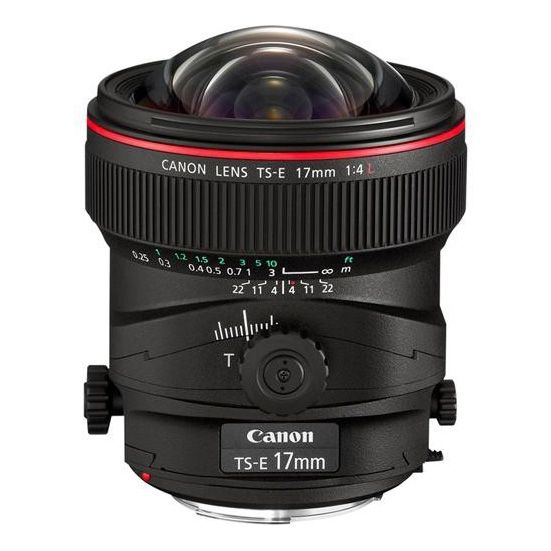 El TS-E 17 mm f / 4L , que presenta un campo de visión ultra amplio con control avanzado de enfoque y perspectiva, es un lente de cambio de inclinación de la serie L de Canon adecuado para la arquitectura y la fotografía de interiores. Es posible hasta +/- 6.5 ° de inclinación, para control de enfoque, y +/- 12 mm de desplazamiento, para ajustar la perspectiva y la composición. El mecanismo de cambio de inclinación se puede girar +/- 90 ° para aplicar movimientos en cualquier dirección, y se puede usar un mecanismo de bloqueo de inclinación mientras se dispara para una mayor estabilidad.