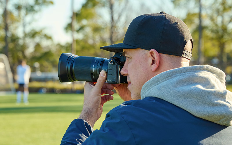 Con un amplio rango de zoom de 14,2x, con tomas desde 28 mm de ancho hasta primeros planos de 400 mm, este es un lente súper zoom ideal para deportes en campo grande, parques temáticos, viajes o cualquier lugar donde se espere lo inesperado.