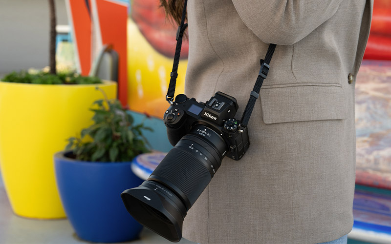 Tan solo 725 g y 5,6 pulgadas retraídas, el NIKKOR Z 28-400 mm f/4-8 VR es liviano y bien equilibrado, y no llama la atención como algunos lentes largos. Llévala cómodamente sobre tu hombro o en un morral o mochila de una correa.